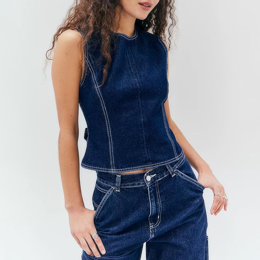 Package Included: 1 x womens y2k backless denim tank tops. Shows your distinctive temperament. Keep you fashionable and erotic. Great gift for yourself or your best friends.