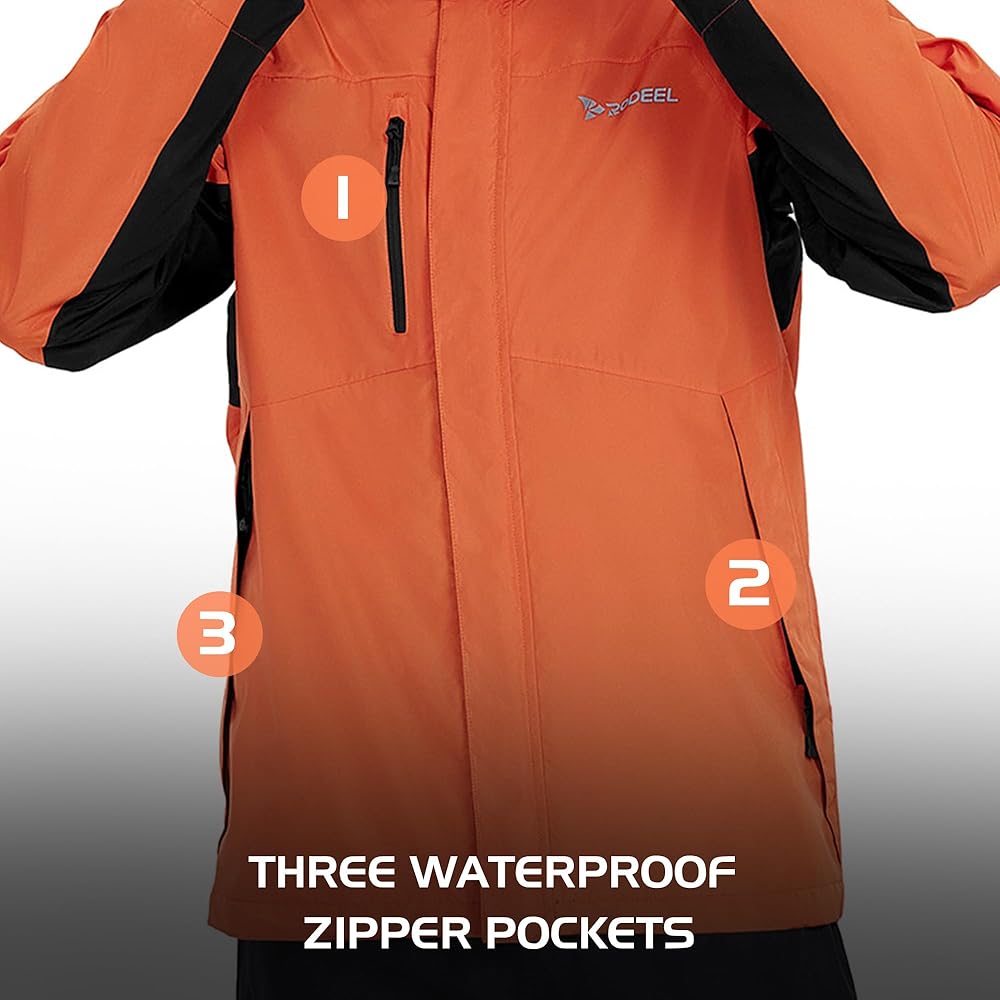 HIGH-PERFORMANCE WATERPROOFING: Crafted with a special waterproof fabric, featuring hydrophobic properties on the surface and a PVC membrane on the inside, our rain jacket effectively keeps water out, ensuring you stay dry even in heavy rainfall.