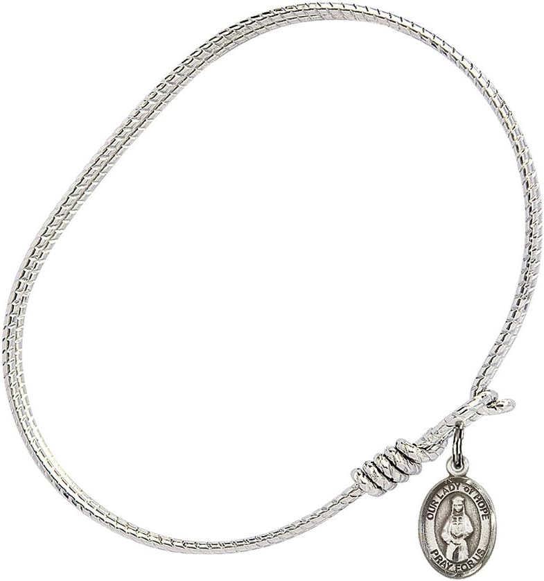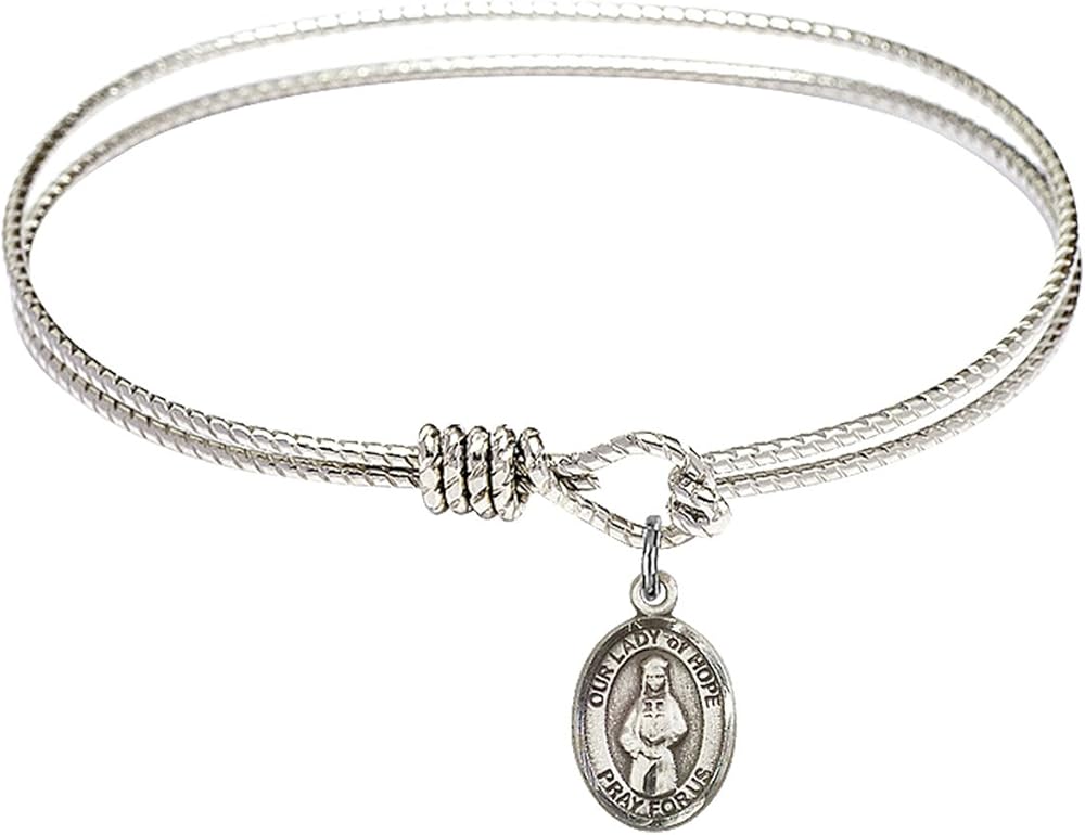 Oval Eye Hook Bangle Bracelet with a Our Lady of Hope charm.