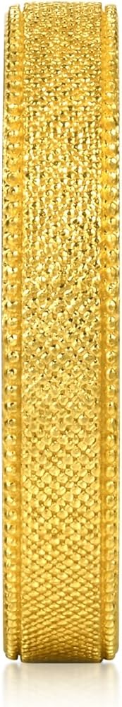 Meticulously crafted from pure 24K gold, this exquisite ring features delicate beaded edges, adding a touch of refinement that enhances its luxurious appeal. The intricate woven texture creates a sense of depth and artistry, while the soft, radiant glow and silk-like finish embody elegance in its purest form