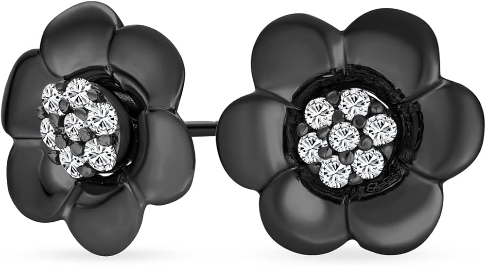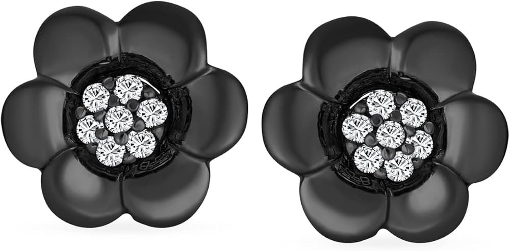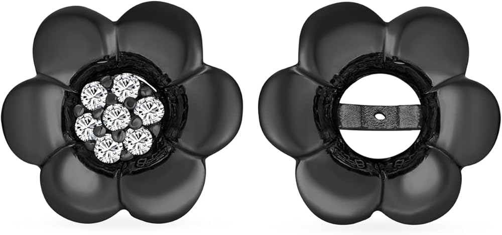 2 In 1 Removable Jackets Simple Danity Pave CZ Stud Center with Petal Flower Jacket Rose Stud Earrings For Women Teen Rose Gold Plated Black .925 Sterling Silver