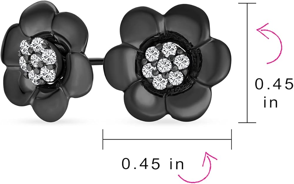 Fun and floral, these 925 sterling silver Rose flower earrings feature petal motifs with sparkling CZ centers. Flirty and feminine, these chic stud earrings add springtime freshness to any look. Perfect for Mother's Day gifts.