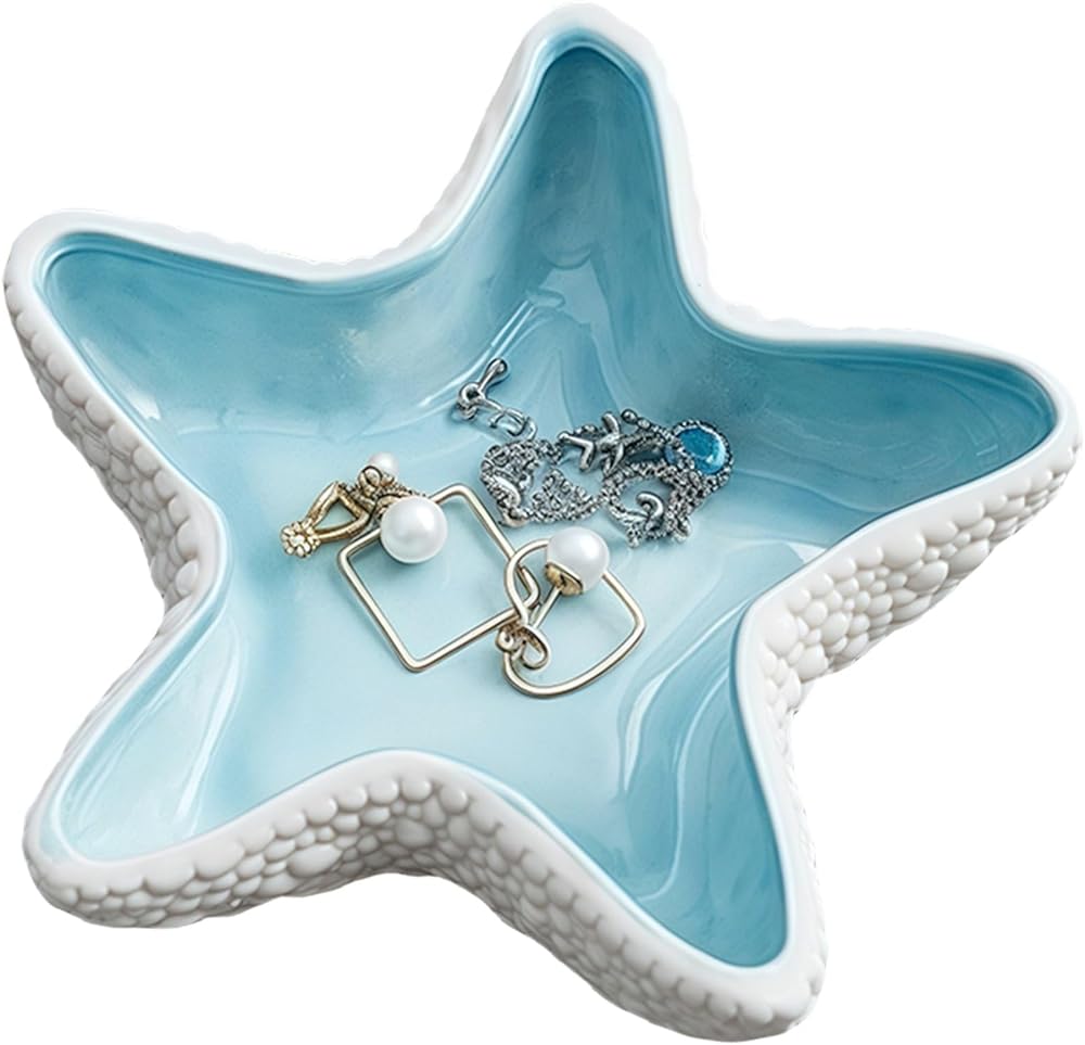 Excellent Quality: This starfish jewelry tray is made of high-quality ceramics and coated with a glossy glaze layer to keep the inner surface intact and suitable for long-term use. The tray has textures and dots on the outside, making it sturdy and durable.