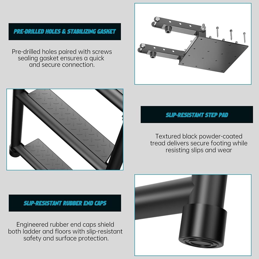 ENHANCED GROUND STABILITY: Sturdy rubber ladder feet ensure a solid, non-slip connection to the ground, improving safety during use