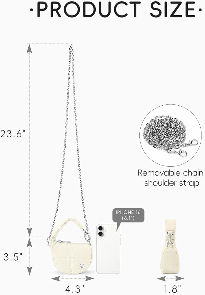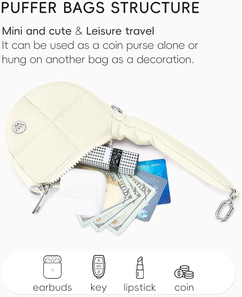 ✅Super Mini & Durable: Measuring just 4.3" x 3.5" x 1.8"(L*H*W) and weighing only 0.26 lbs, this mini puffer purse is crafted from water-resistant nylon to keep essentials safe and dry.