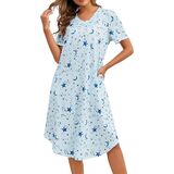 Material: Ladies nightgown is made of soft stretchy cotton blend material, breathable and lightweight, cozy to sleep in and lounge around the house, great for all year use and easy to care for