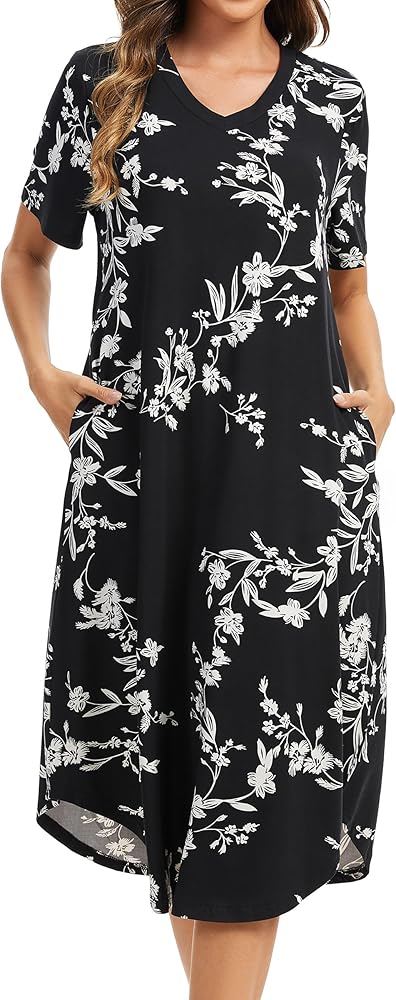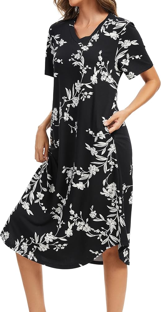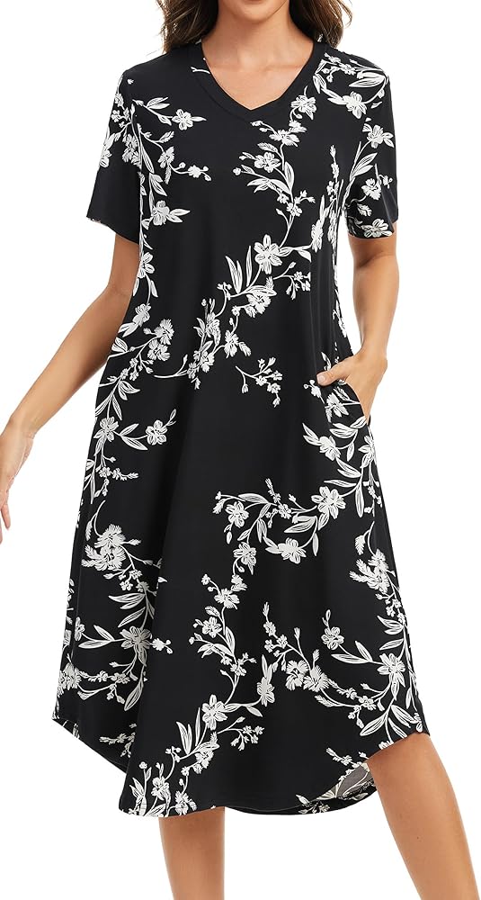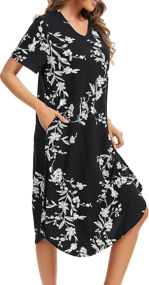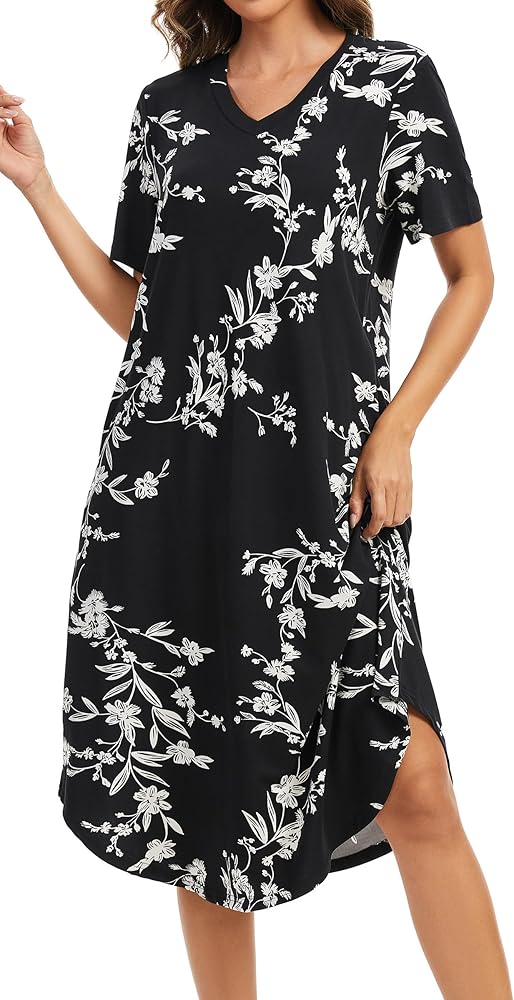 Design: Womens nightgown feature a relaxed A-line design for comfort and freedom of movement, the V-neck design flatters your neckline, while the acurved hem and short-sleeved style keeps you cool and comfortable all night long