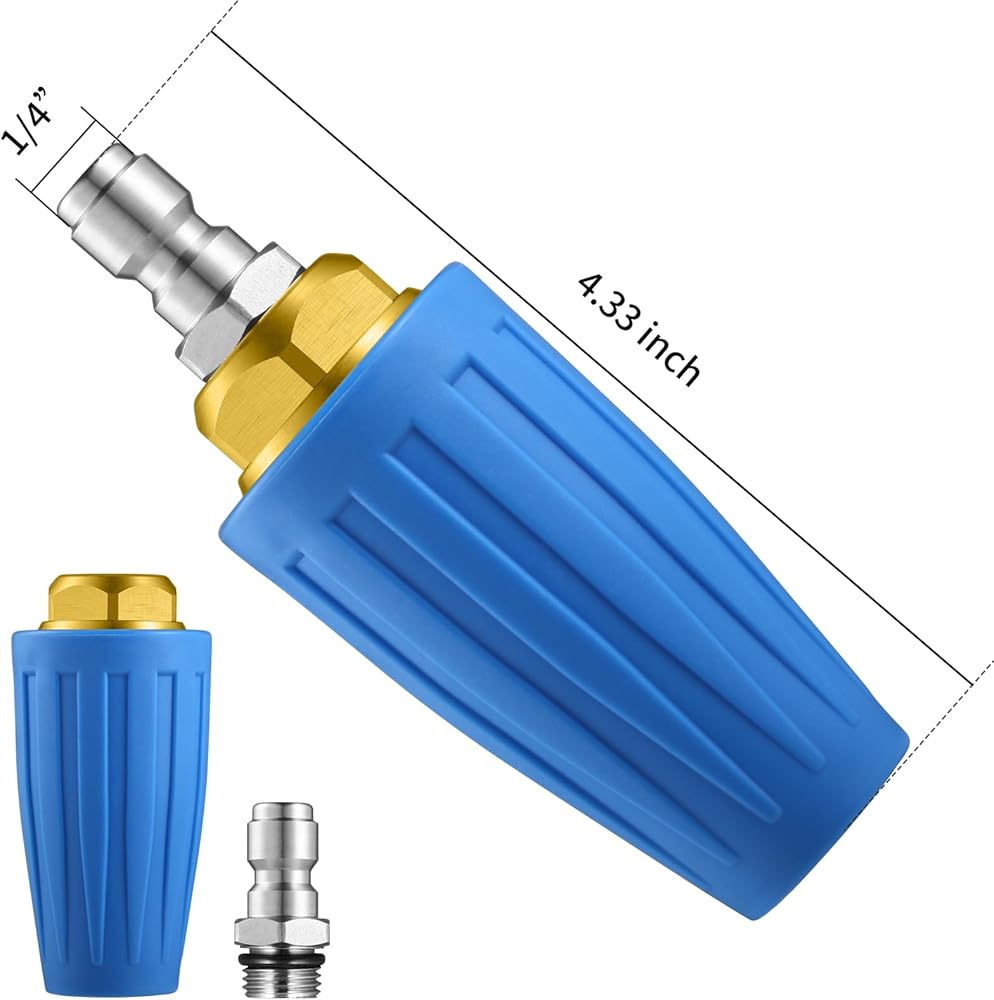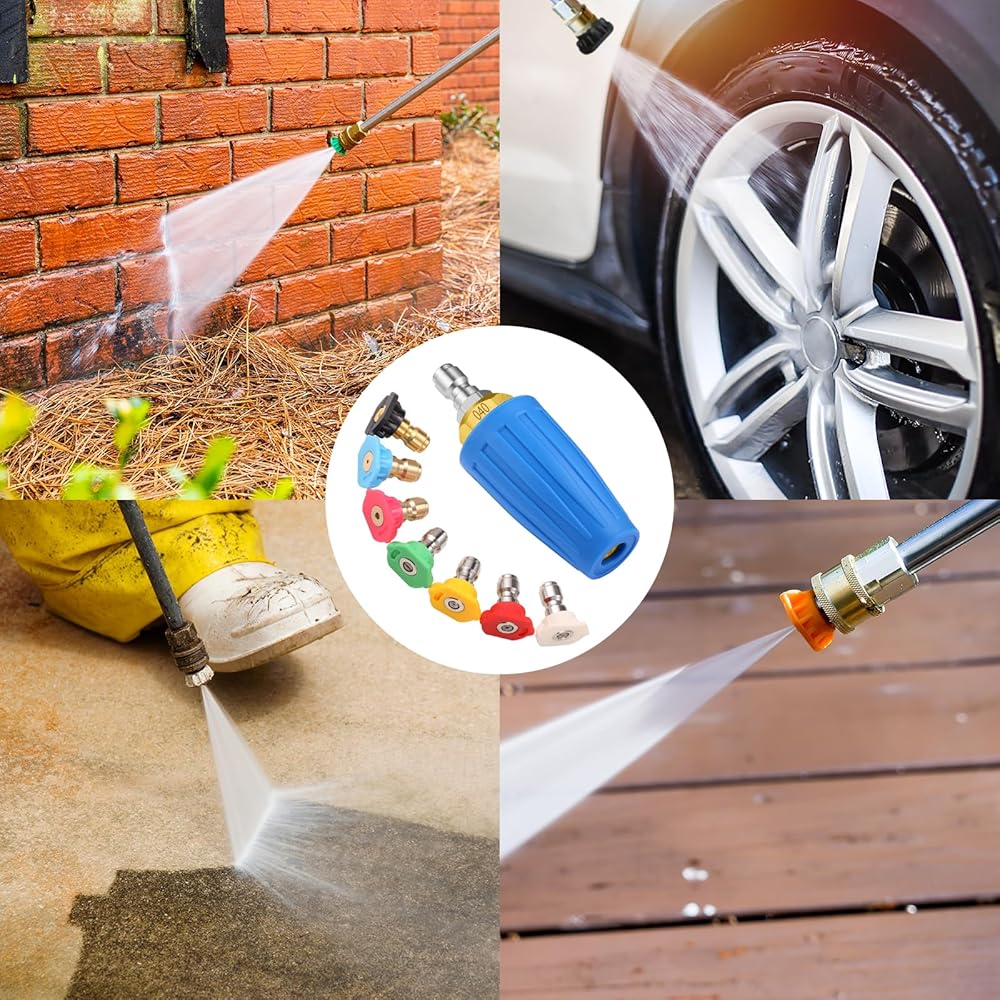 【Wide Range of Applications】: Turbo nozzle is ideal for tackling stubborn dirt and rust, cleaning metal or plastic tanks, ships, garage floors, stripping paint from wood siding, and removing mud and clay from highways and construction equipment.