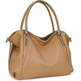 [Premium Quality]: Crafted with top layer cowhide genuine leather and accented with high-quality silver hardware, this handbag is designed to withstand the test of time. The dark brown interior polyester lining adds a touch of luxury to the overall design.