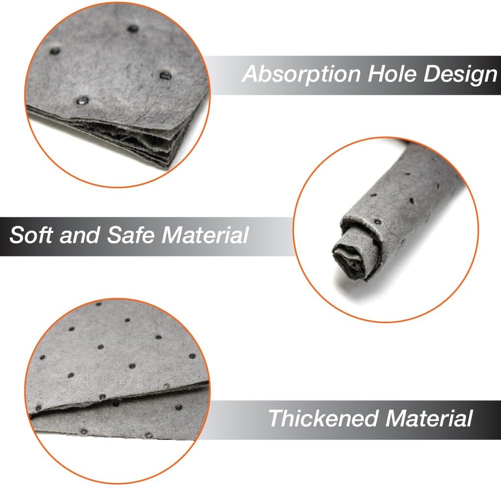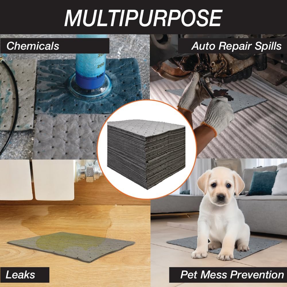 الامتصاص متعدد الاستخدامات: يمكن لهذه الفوط الامتصاص العالمية التعامل مع جميع السوائل والانسكابات العامة ، بما في ذلك الزيوت والمبردات والمذيبات والسوائل القائمة على الماء. مثالي لمجموعة واسعة من البيئات من المطاعم والبارات ومحلات البقالة إلى المدارس والصالات الرياضية ومحلات سيارات أجسام السيارات.