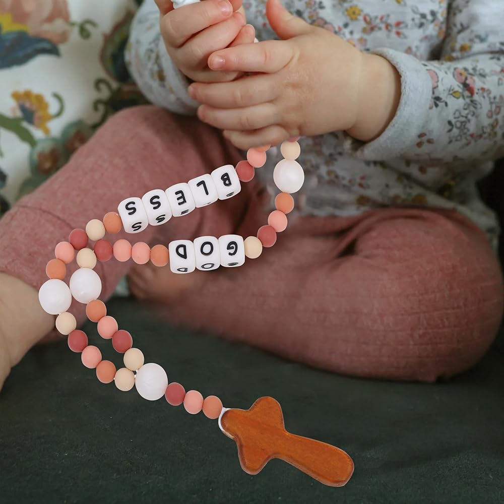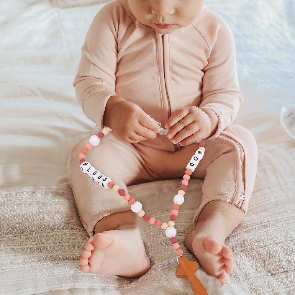 SILICONE CHEWY ROSARY: Soft silicone material is not only comfortable, but also has a certain degree of elasticity, even if accidentally dropped, will not be easily damaged, it is a great accompaniment to the growth of the little ones