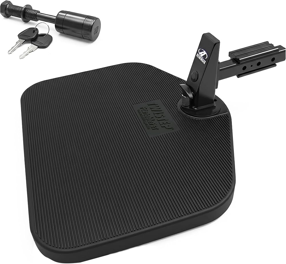 Twistep is an instant, multi-use step that helps your dog get in and out of your SUV easily. It attaches to the hitch receiver of your vehicle and stores under the bumper when not in use. Twistep provides your pet with lower-impact, lower-stress access into and out of a vehicle. Repeated jumping into and out of a vehicle can aggravate or even cause serious conditions like arthritis, leg injuries, back sprains and other spinal damage. And lifting a large dog into a vehicle isn't easy! Twistep was designed for single hand use, so you can have a leash in your hand, while you easily position the step into place. Twistep easily swivels out from under the vehicle in a few seconds just when you need it. And it tucks out of the way under the bumper when you don't. Unlike ramp alternatives, with Twistep there's no time consuming set up required. There's no heavy, awkward or muddy items that you have to stow in the back cargo area of your vehicle. And importantly, there's no more lifting! Included with this Twistep is the Threaded Hitch Lock to secure your Twistep to the receiver hitch and prevent theft. 2 Keys are included with the Lock. Note: The following vehicles require the TWISTEP Extension Bracket (item #3053) to provide additional clearance for the spare tire: 2006 - Current Chevrolet Tahoe, 2006 - Current GMC Yukon, 2006 - Current Nissan Pathfinder, 2014 - Current Jeep Grand Cherokee, 2018 - Current Ford Expedition. A minimum of 16” ground clearance is required from the lower-edge of the receiver. Twistep does not fit a 2019 Subaru Ascent and most mini-vans due to either the bumper configuration and/or ground clearance.