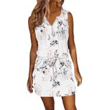 Unique Design: v neck, button down, pleated, sleeveless, drawstring waist, elastic waist, two side pockets, above knee length,Simple and classy cute dress, fit any body shape.drawstring waist,perfectly highlights your curve and show your body charm.