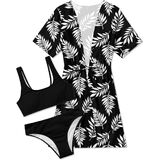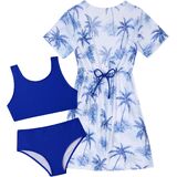 3 Piece Bathing Suit Fabric: Two-piece bikini set is made of 82% nylon and 18% spandex, the cover-up is made of 95% polyester and 5% spandex. Lightweight, Soft, Breathable, Comfortable and Quick-Drying.