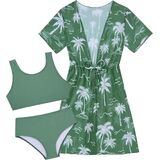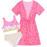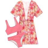Girl's Bikini Sets Feature: Scoop neck, full coverage bikini bottom, drawstring kimono cover up, vibrant color, Hawaiian style. Cute 3d print swimsuits make your girls more gorgeous.