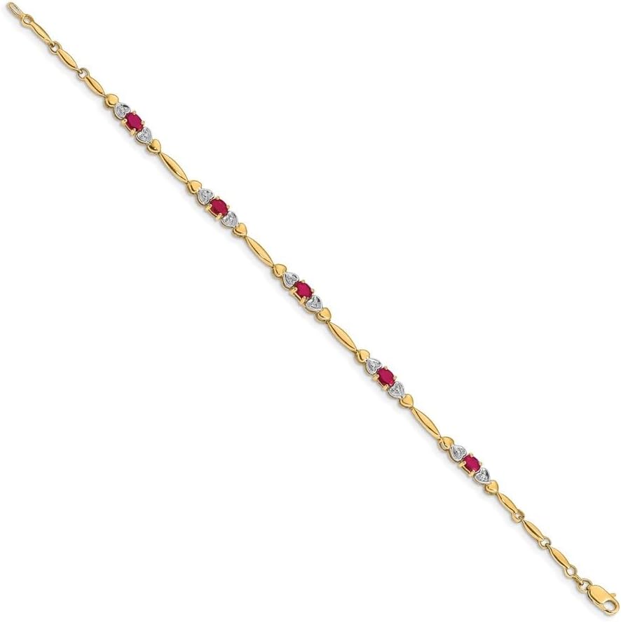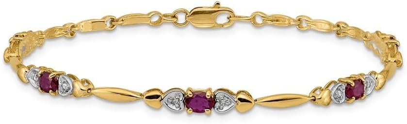PRODUCT SPECIFICATIONS : 14K Yellow Gold 4x3 mm Emerald and Diamond Bracelet 7", Material Purity:14K|Finish:Polished|Stone Type_1:Emerald|Stone Color_1:Green|Stone Quantity_1:5|Length of Item:7 in|Stone Weight_1:0.22 ct|Stone Weight_2:0.005 ct|Chain Length:7 in|Chain Width:4mm|Clasp /Connector:Lobster|Material:Gold|Stone Shape_1:Oval|Stone Size_1:4 x 3mm|Stone Size_2:1mm|Stone Treatment_1:Oiling/Resin|Width of Item:4mm|Bracelet Type:Gemstones|Material Color:Yellow|Birthstone Month:(05) May