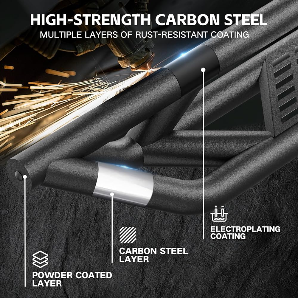 【Functionality】: Provides effective collision protection, reducing the risk of door damage and other potential hazards. Allows for easy access to the vehicle for everyone. Convenient for cleaning the vehicle's roof and carrying rooftop cargo. Upgrade your wrangler JK functionality with our Drop Side Steps.