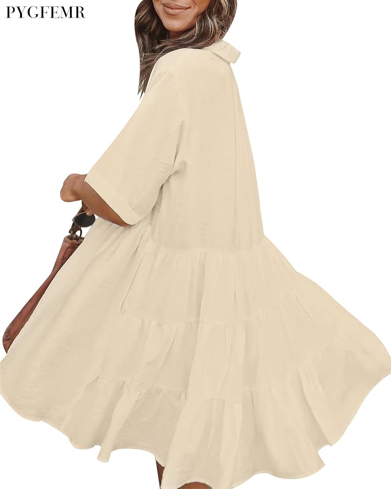 💝Features & US Size: Babydoll dress for women features short sleeve, button down, button up, with pockets, babydoll, tunic, mini, solid color, shirt collar, tiered dress. S(US 4-6), M(US 8-10), L(US 12-14), XL(US 16), 2XL(US 18).