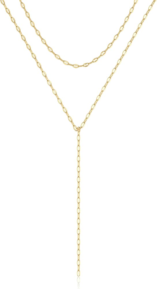 Lariat Gold Necklaces for Women, Dainty 14k Gold Plated Long Layered Chain Necklace Trendy Y-Shaped Pendant Necklace Statement Charm Jewelry for Women Gift