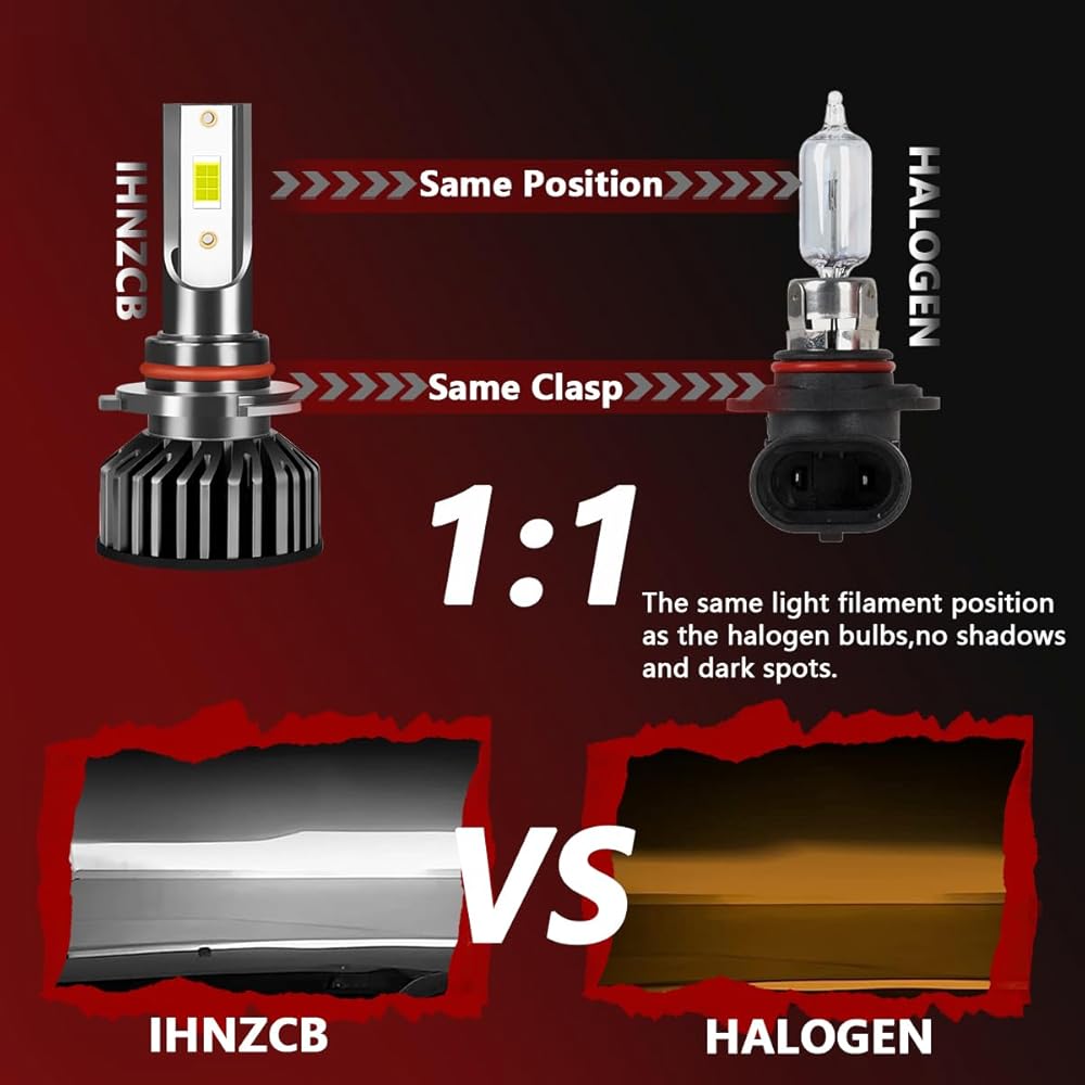 【Higher Brightness】 IHNZCB's 9005/HB3 H11 LED headlight bulbs are 5 times brighter than halogen,120W 20000LM per set maximize light output and 6000K cool white to provide superior visibility, high brightness and far light distance will help you see wider and farther and recognize obstacles /traffic signs earlier to ensure safer nighttime driving and decrease crash risk.