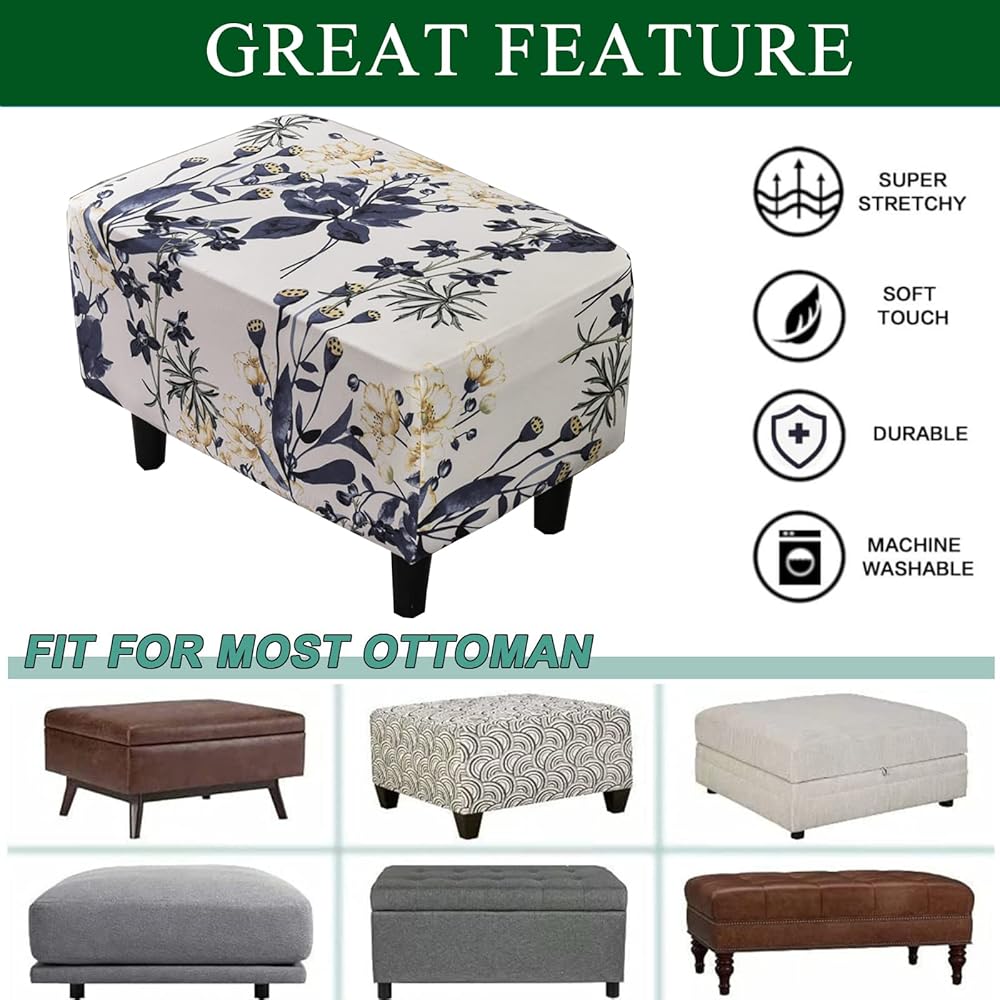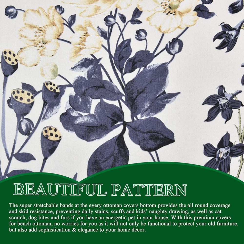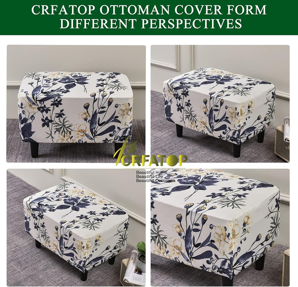 Suitable for Chair Size: This innovated 1 piece storage ottomans cover is crafted from durable and soft high stretch printed fabric. Suitable for most rectangular and 5 sided storage ottomans. Large size fit most ottoman with 21.65-25.56 inch length, 13.78-17.71 inch width, 7.87-11.87 inch height. Feature one-size-fits-most, kindly measure before ordering