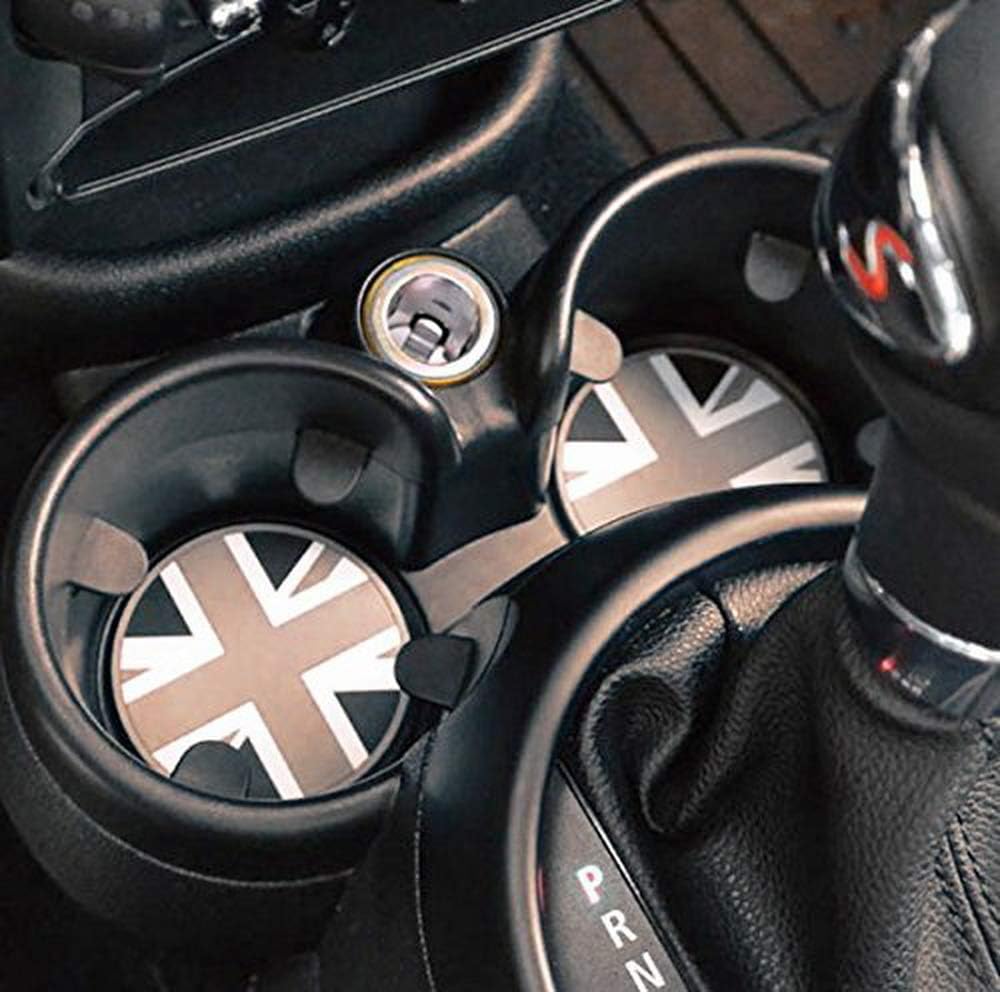 iJDMTOY Union Jack Style Silicone Interior Cabin Mats Compatible with MINI Cooper R55 R56 R57 R58 R59, 7-Piece Black/Grey Cupholder Coasters, Side Door Compartment Liners