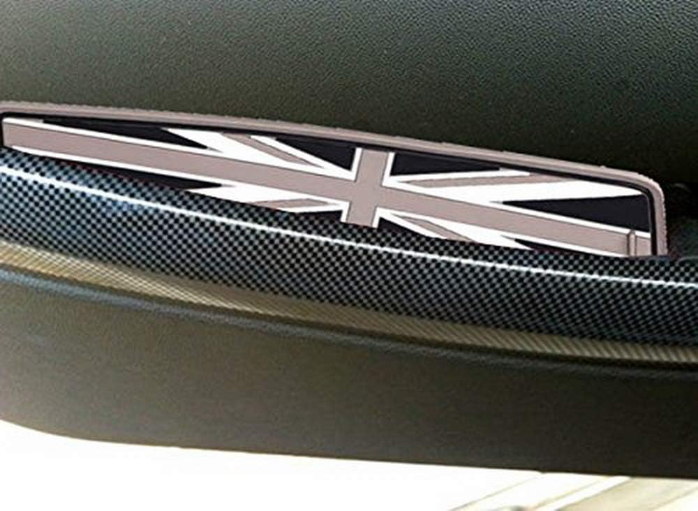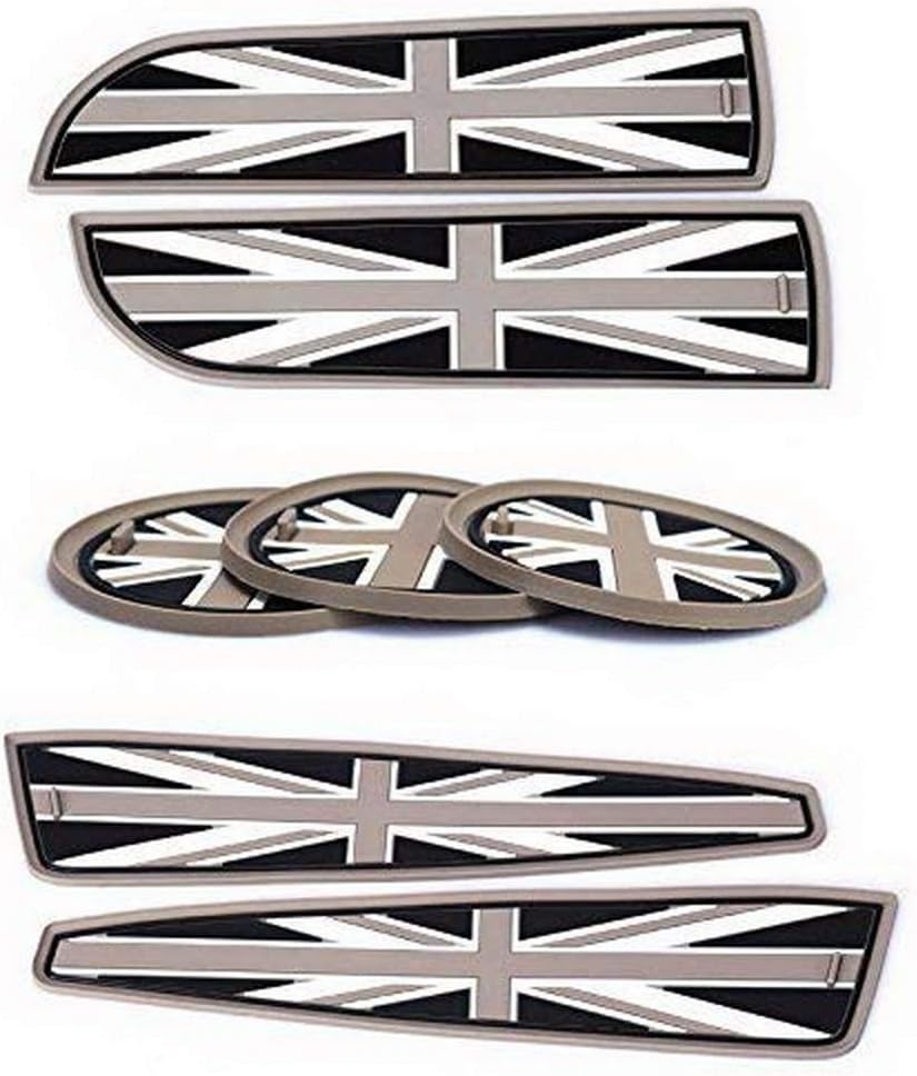 Includes a 7-piece set of black/grey Union Jack UK Flag design, with 2 pieces for the front side door compartment, 2 pieces for the rear side compartment, 2 pieces for front cupholders, and 1 piece for the rear cupholder