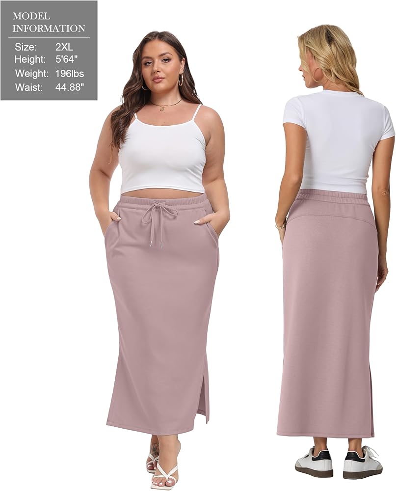 Features: High Waisted Long Skirts, Drawstring Elastic Waist Cute Skirts, Four-Way Stretch, Practical pockets on both sides deep enough to hold your cell phone, wallet, keys, and more