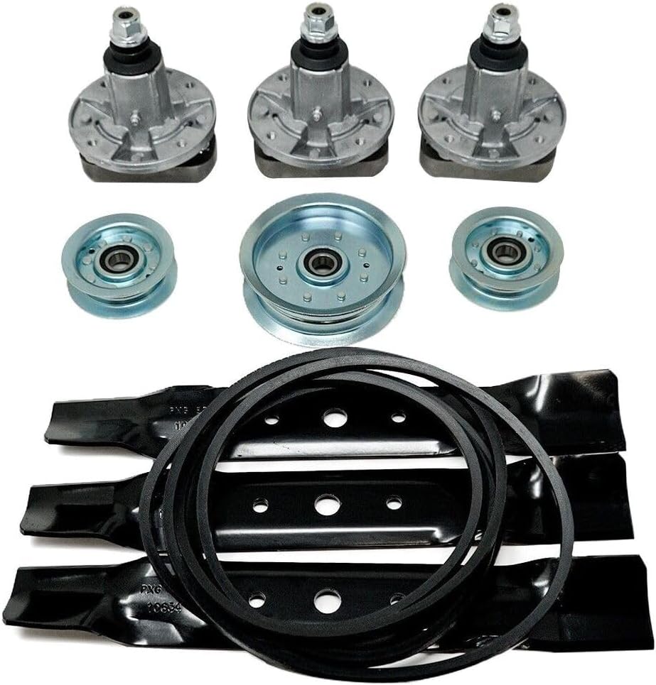 Kit Includes:(3) Spindles,(3) Blades,(1) Drive Belt,(2) Idler Pulley,(1) Flat Idler Pulley