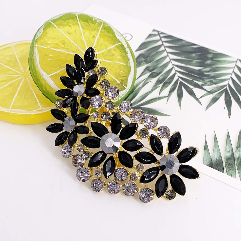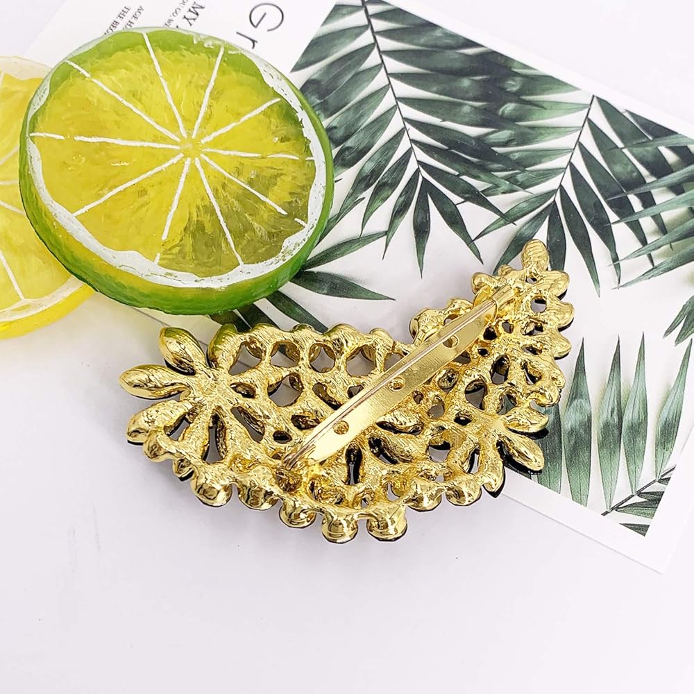 LAXPICOL Vintage Austrian Crystal Flower Leaf Bouquet Clusters Large Big Brooch Pin for Women Gold Tone