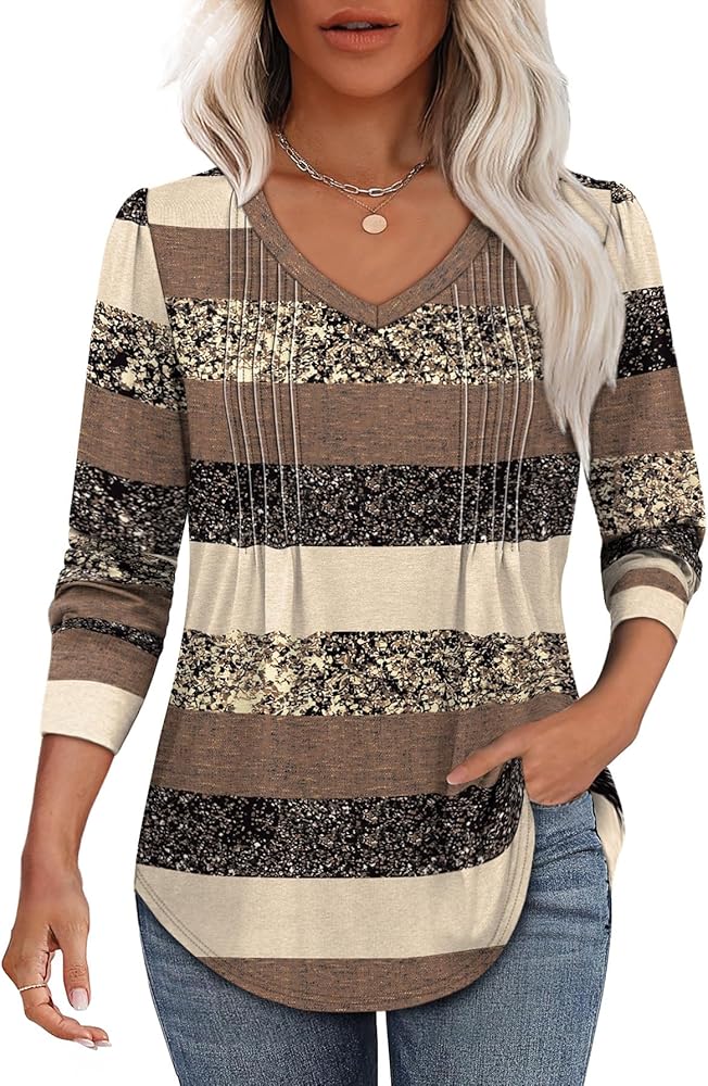 Material: Print Tops-95% polyester and 5% spandex,Solid Color Tops-60%Polyester,35%Rayon,5%Spandex. This T-shirt is soft and skin-friendly, breathable but won't see through, and will give you comfort throughout the day