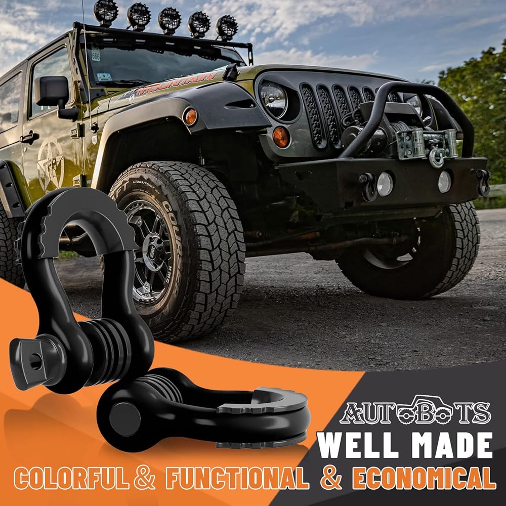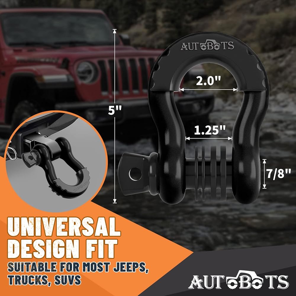 【SOLID & HEAVY DUTY】- AUTOBOTS 3/4 Inch D Ring Shackles with 7/8 Screw Pin and Isolator Washer Kits to Make It More Stability. Our Shackles is Made of High-quality Forged Steel. Its Towing and Recovering Break Strength Reaches Up to 48,000lb