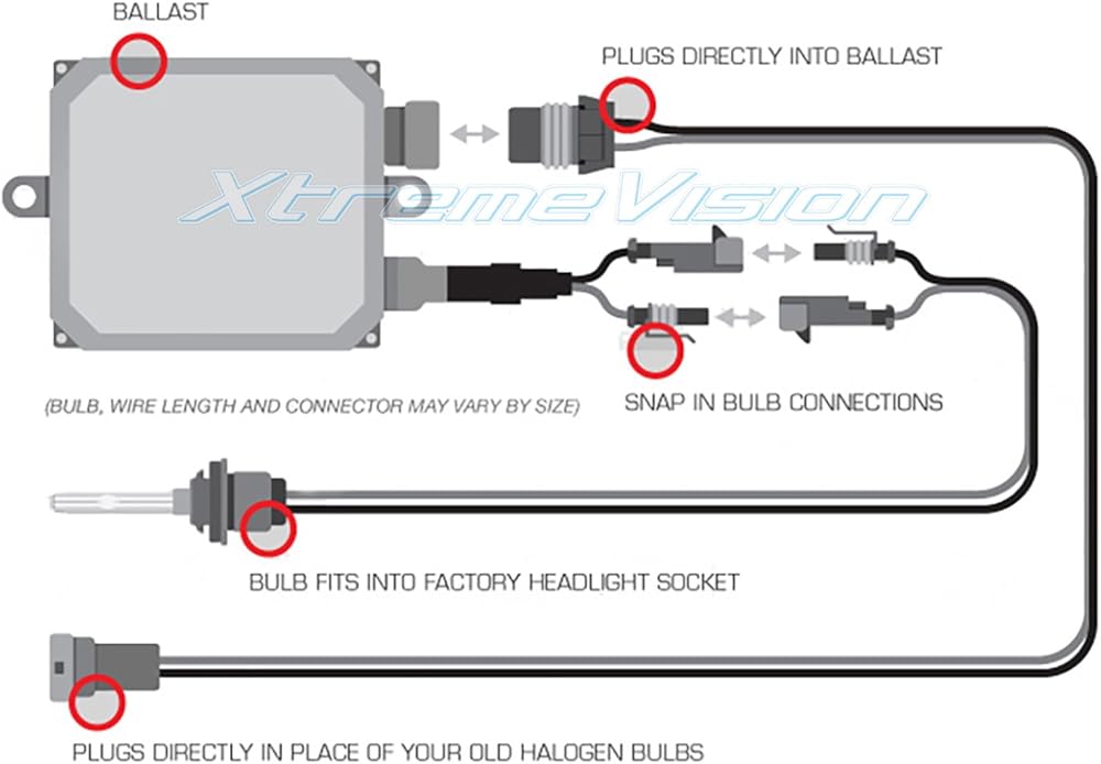 BUNDLE CONTENTS: (2) XtremeVision 35W Premium Slim Ballast, (2) XtremeVision H11 5000K Bright White Xenon Bulbs, (2) Plug and Play Wiring Harness