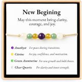 Start your next chapter with courage, growth, and light. This crystal bracelet combines four powerful stones to support emotional balance and fresh beginnings: Amethyst – Brings calm during transitions Citrine – Inspires joy and confidence Green Aventurine – Opens new paths Clear Quartz – Clarifies your mind and strengthens self-trust It's a thoughtful gift for students returning to school, friends starting a new job, coworkers moving on, or anyone embracing change.