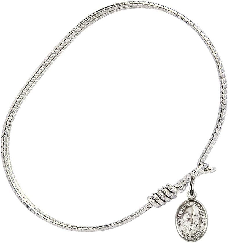 Oval Eye Hook Bangle Bracelet with a St. Mary Magdalene charm.