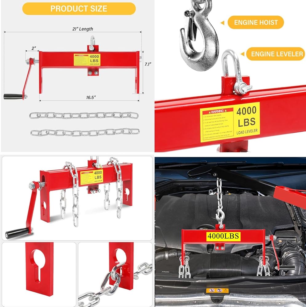 【Powerful Capacity-Leveler】 The 4000 lbs. lifting capacity offers enough power to lift a variety of engines or heavy objects.