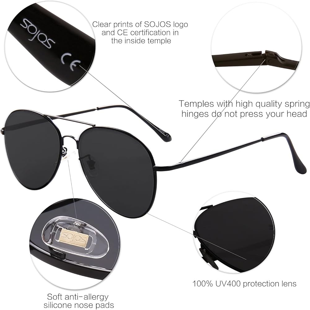 HIGH-QUALITY MATERIALS – These SojoS vintage aviator sunglasses are made of high-quality metal materials, colorful flash mirrored reflective UV400 lenses, and spring hinges, all the details ensuring you a long time using. These pilot-style sunglasses are suitable for both men and women.