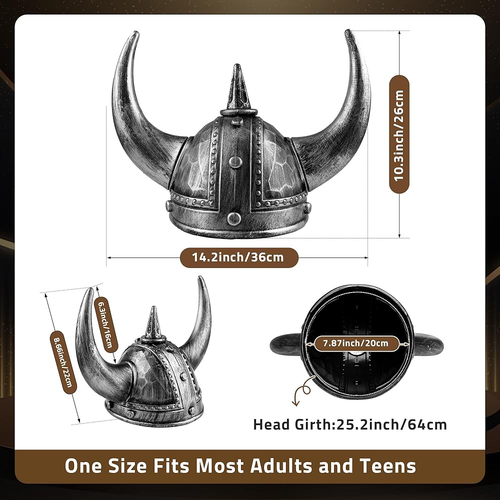 UNIVERSAL FIT - The head circumference of this viking hat is 25.2inch. The plastic viking helmet measures 14.2"L x 10.3"H. It is fully wearable adult size. Suitable for most teenagers and adults.