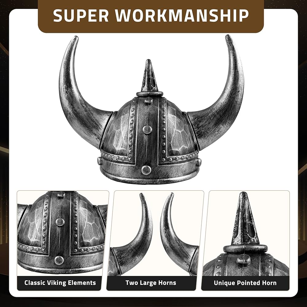 PREMIUM MATERIAL - The viking helmet with horns is crafted from high quality plastic, polyvinyl chloride with realistic metal appearance colored paint, which is lightweight, non-toxic, odorless, durable and comfortable to wear.