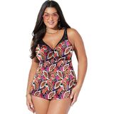Crafted crochet detail gives this tankini top its artful touch. Adjustable straps and an underwire bra provide comfort and support, while a V-neckline and fit and flare silhouette lets you rock a glam style from beach to boardwalk. Pair it with your favorite swim bottoms for your own unique look. V-neckBuilt-in underwire molded bra cups with Power Mesh frameAdjustable strapsG-hook back closure with 3 adjustmentsCrochet detail 82% Nylon / 18% SpandexHand wash with mild soap. Roll suit in towel & squeeze out excess water. Dry flat; avoid washers & dryers.Imported Flattering fit and flare silhouetteRelaxed fitSwim Solutions: UnderwireChoose your band/cup size like you would your favorite bra.Side seam measures 17.5" on size 42D + 40DDThis style is available bra sized up to G cup.