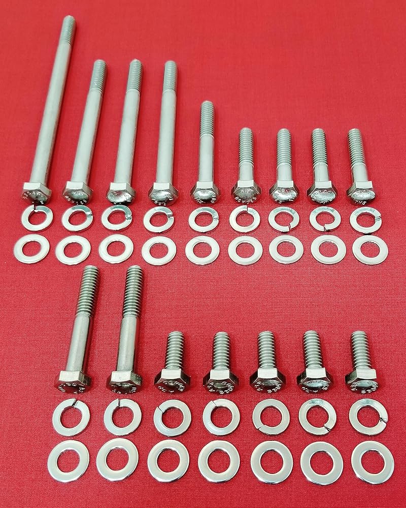 This is a high quality stainless steel Hex Bolt kit Compatible with the 1985 & Older SB Ford Engines. The kit has individually packaged and labeled component kits for the following: Water Pump Timing Cover