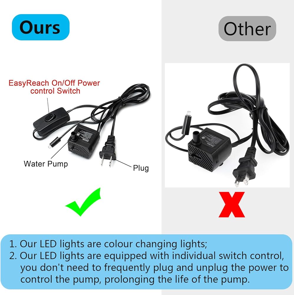 【One-Touch Pump Control】The upgraded built-in pump includes a dedicated switch button, eliminating the need to unplug the power repeatedly. Effortlessly start or stop the water flow for safer, hassle-free use.