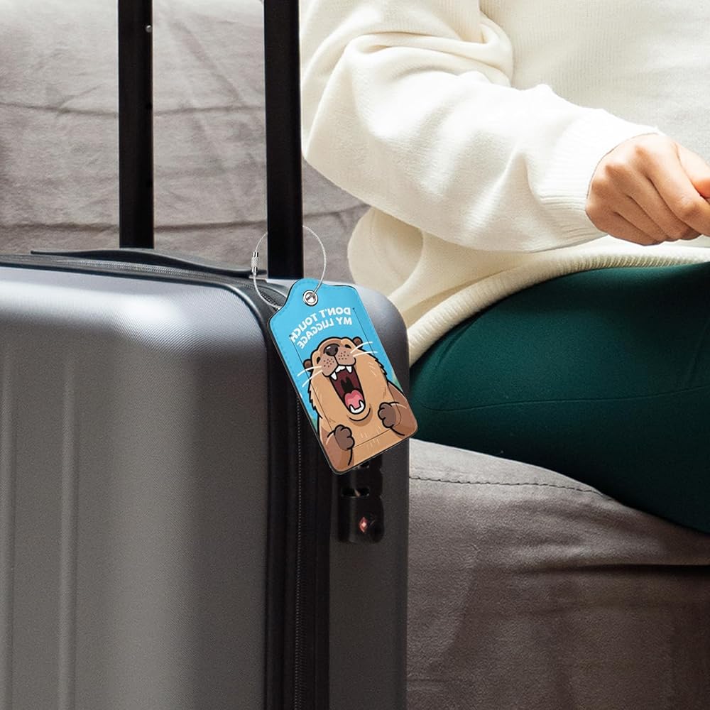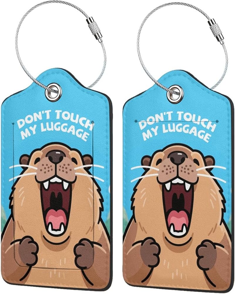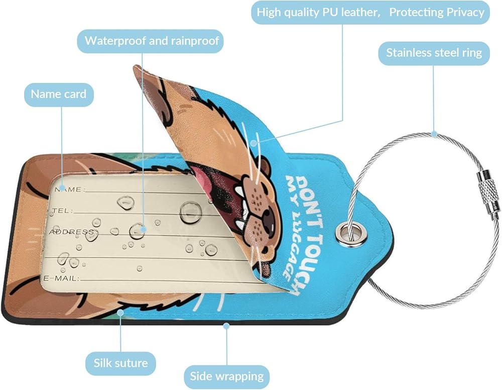 Luggage Tags for Suitcases Cute PU Leather Luggage Tags Travel Name Tags Baggage Tags for Cruise Ships Airport Travel Essentials 2 Pack (Blue Capybara)