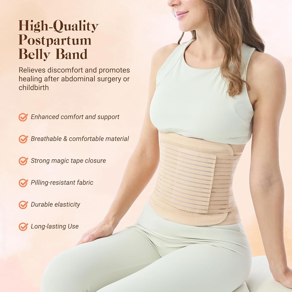 Suitable for Daily and Long-Term Wear: Crafted from a soft, lightweight, and breathable fabric that does not cause discomfort or irritation even when worn for extended periods, it can be used overnight. This Trendyline post partum waist binder is gentle on the skin, free from odors, and designed to prevent itchiness. C section recovery band is specifically tailored for new mothers, offering support to your tummy and hips while strengthening your core muscles post-childbirth.