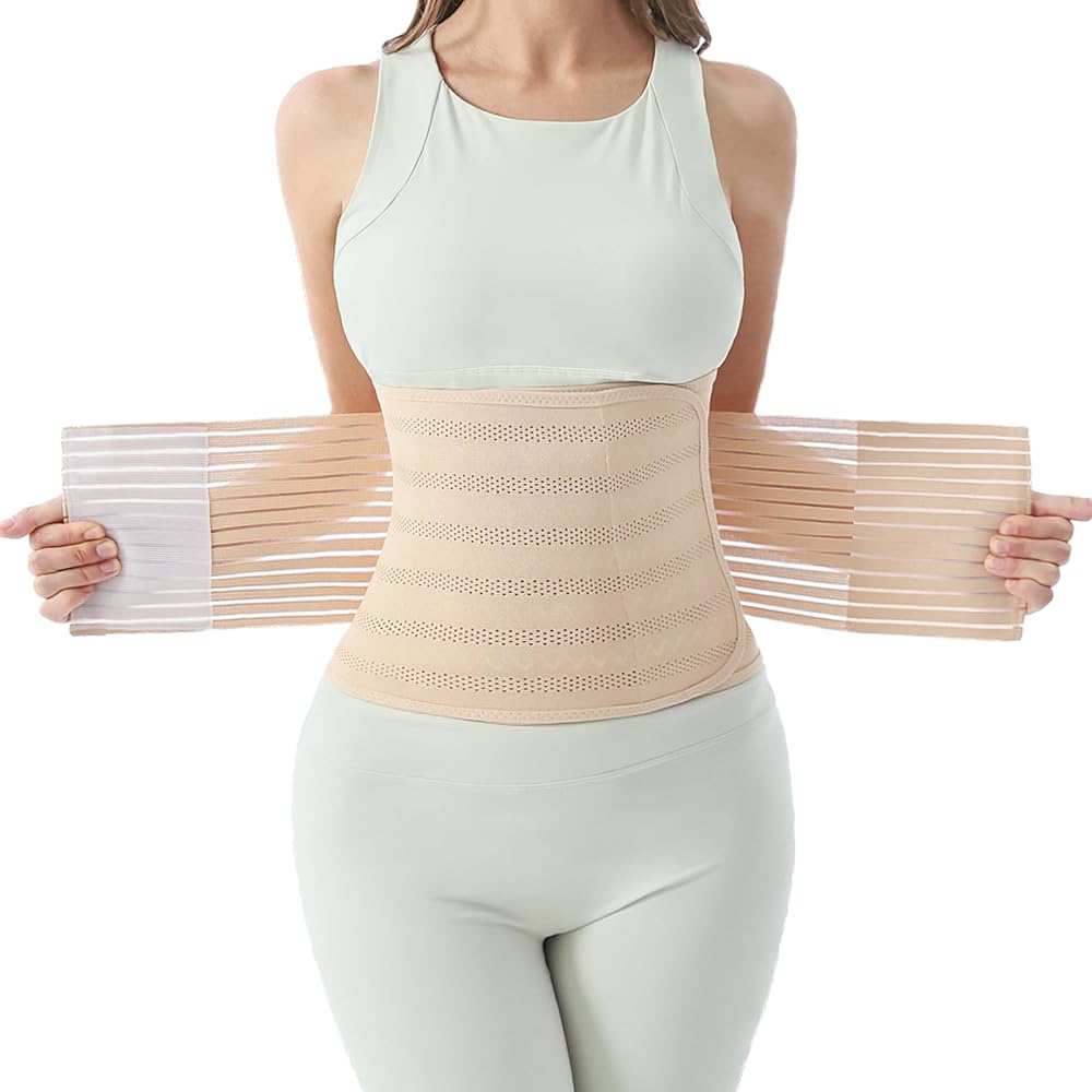 Customizable Fit: Featuring a dual-adjustment strap system that is easy to put on, remove, clean, and not easy to roll up, the abdominal binder ensures a comfortable fit throughout the day. It offers additional support after a C-section or vaginal birth, promoting mobility and helping you return to your daily routine faster. The adjustable design accommodates your changing body size postnatally, providing consistent compression to offering a slimming effect on your belly and waist.