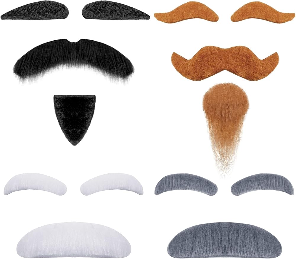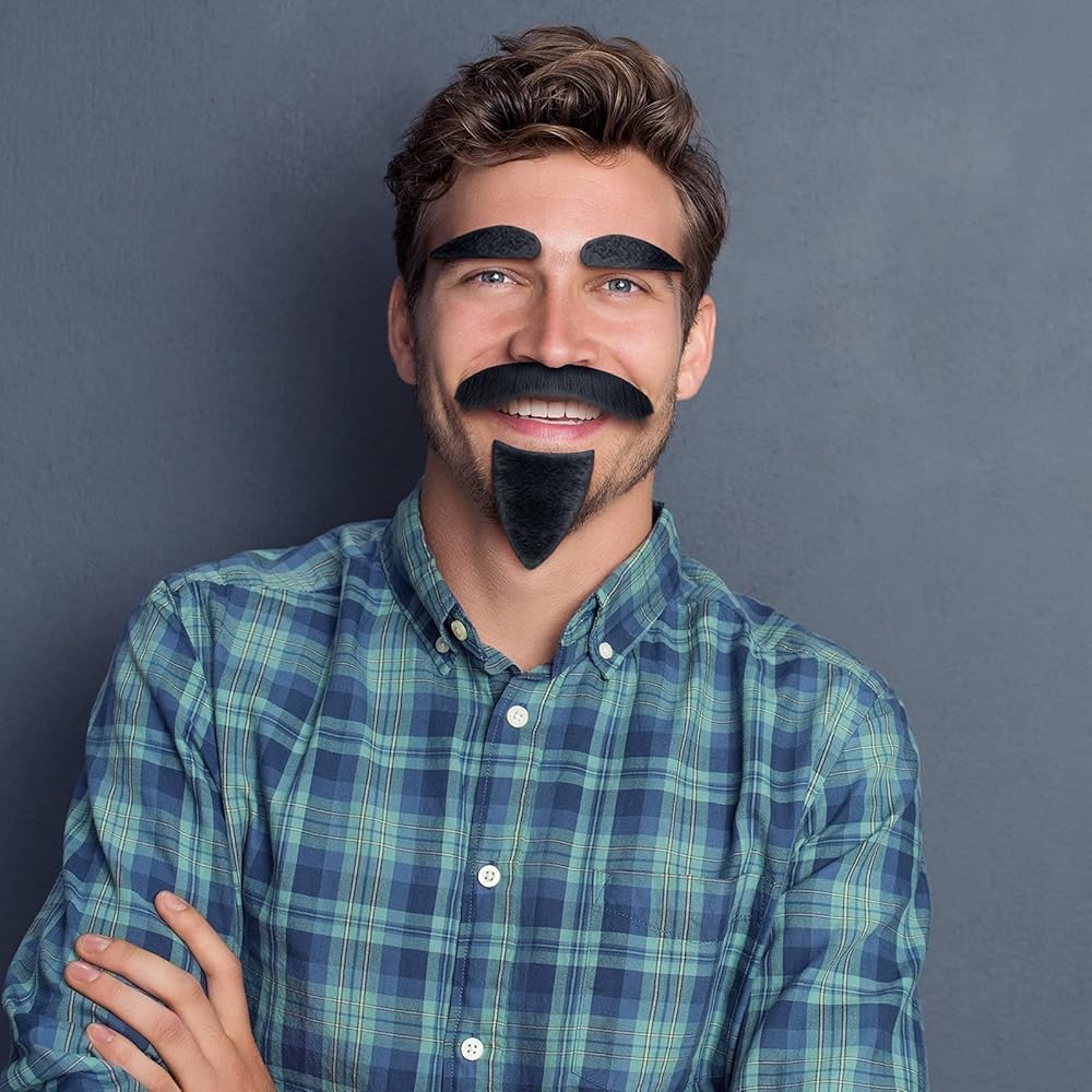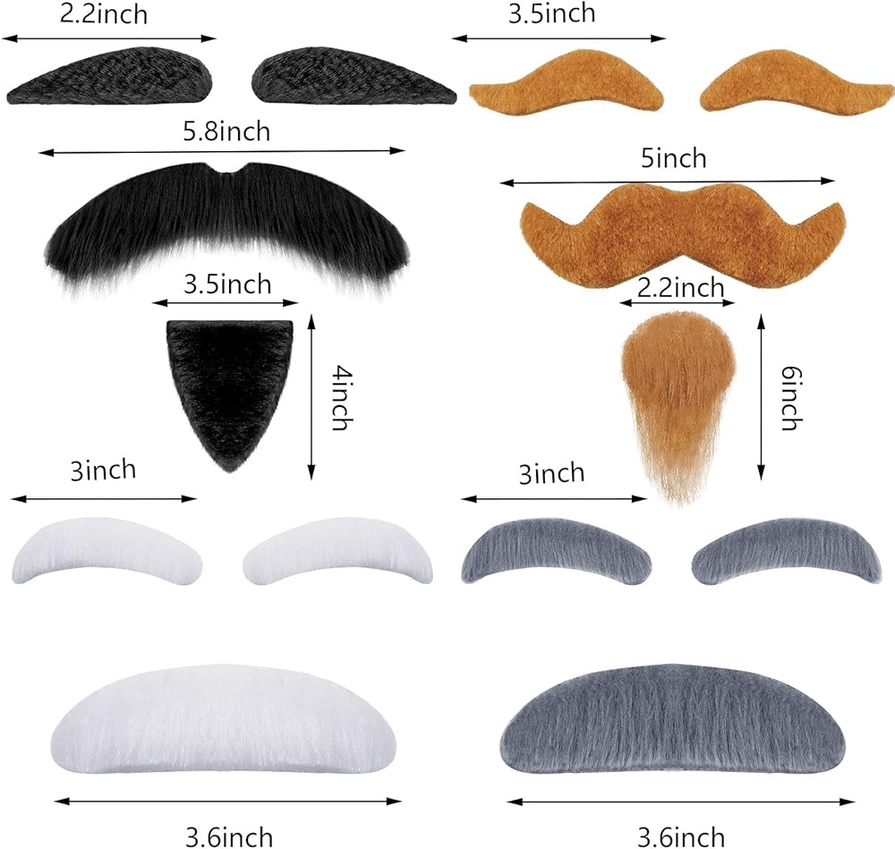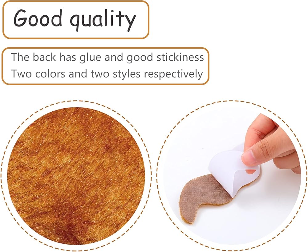Each set comes with an adhesive, you can use it directly after removing the sticker, which is very simple and convenient, moustache and eyebrows are easy to put on and take off because it stays in place and keeps its shape for several hours.