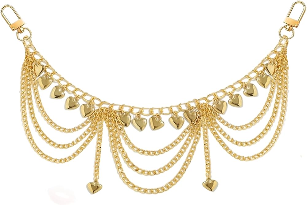 VERSATILE DESIGN: Stylish purse charms chain featuring elegant heart and bag charms in gold finish, perfect for bag,handbag, purses, and phone accessories