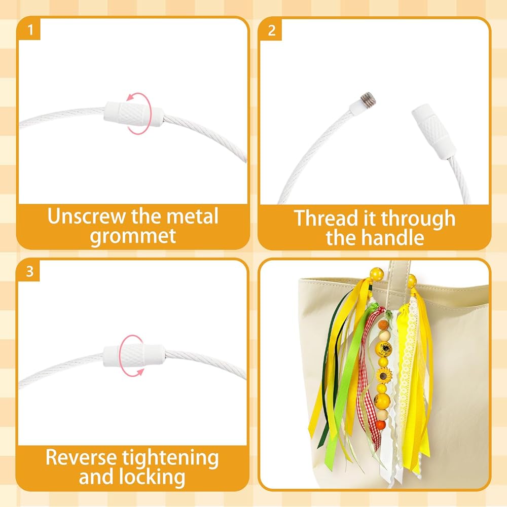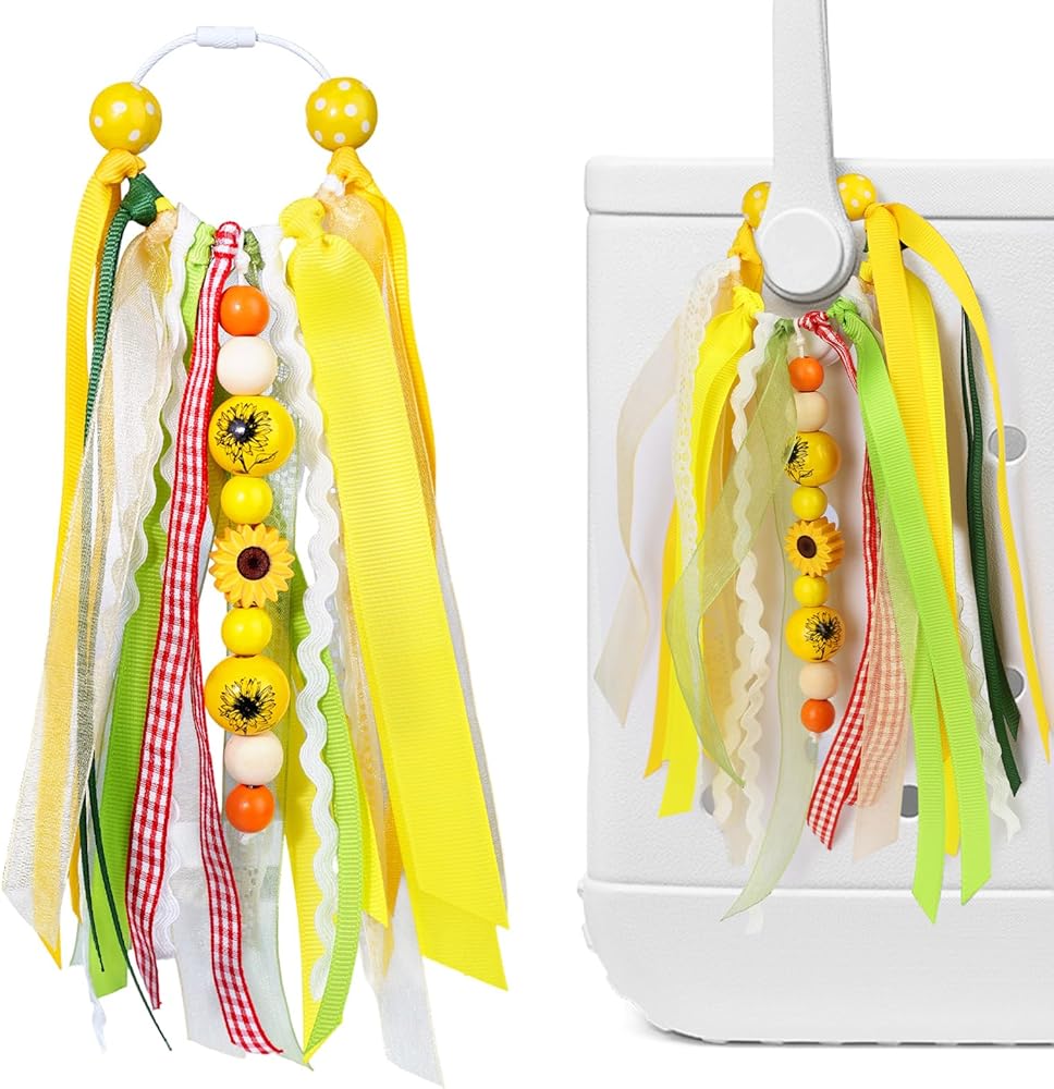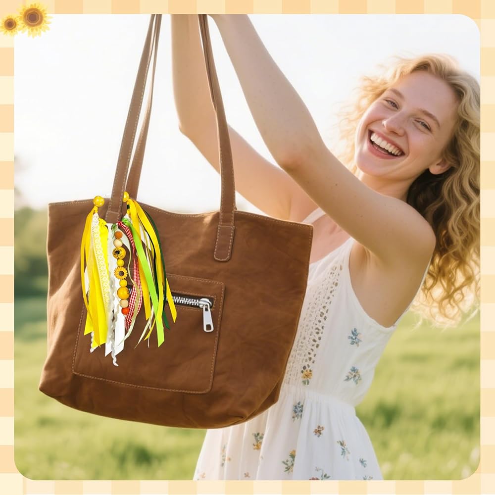 Colorful Tassels: The summer keychain is designed and made with green and pink soft ribbons elements, bring a unique touch of color to your bag. The keychain pendant of the tote bag is adorned with beads and cute brightly colored ribbons, which complement each other and easily attract people's attention.