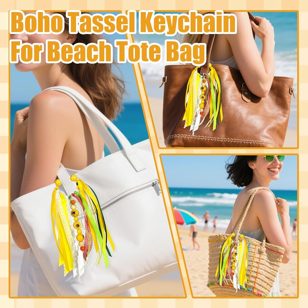 Boho Tassel keychain: The personalized bohemian style bag keychain pendant adds a unique style and texture to your tote bag, beach bag, and purse charm, making your stand out and full of vitality.