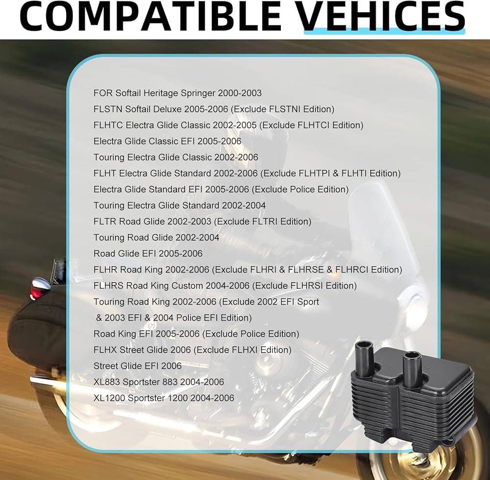 COMPATIBILITY: Fits for Only for Touring Road King 2002-2006 (Exclude 2002 EFI Sport & 2003 EFI & 2004 Police EFI Edition), Road King EFI 2005-2006 (Exclude Police Edition), FLHX Street Glide 2006 (Exclude FLHXI Edition), Street Glide EFI 2006, XL883 Sportster 883 2004-2006, XL1200 Sportster 1200 2004-2006.